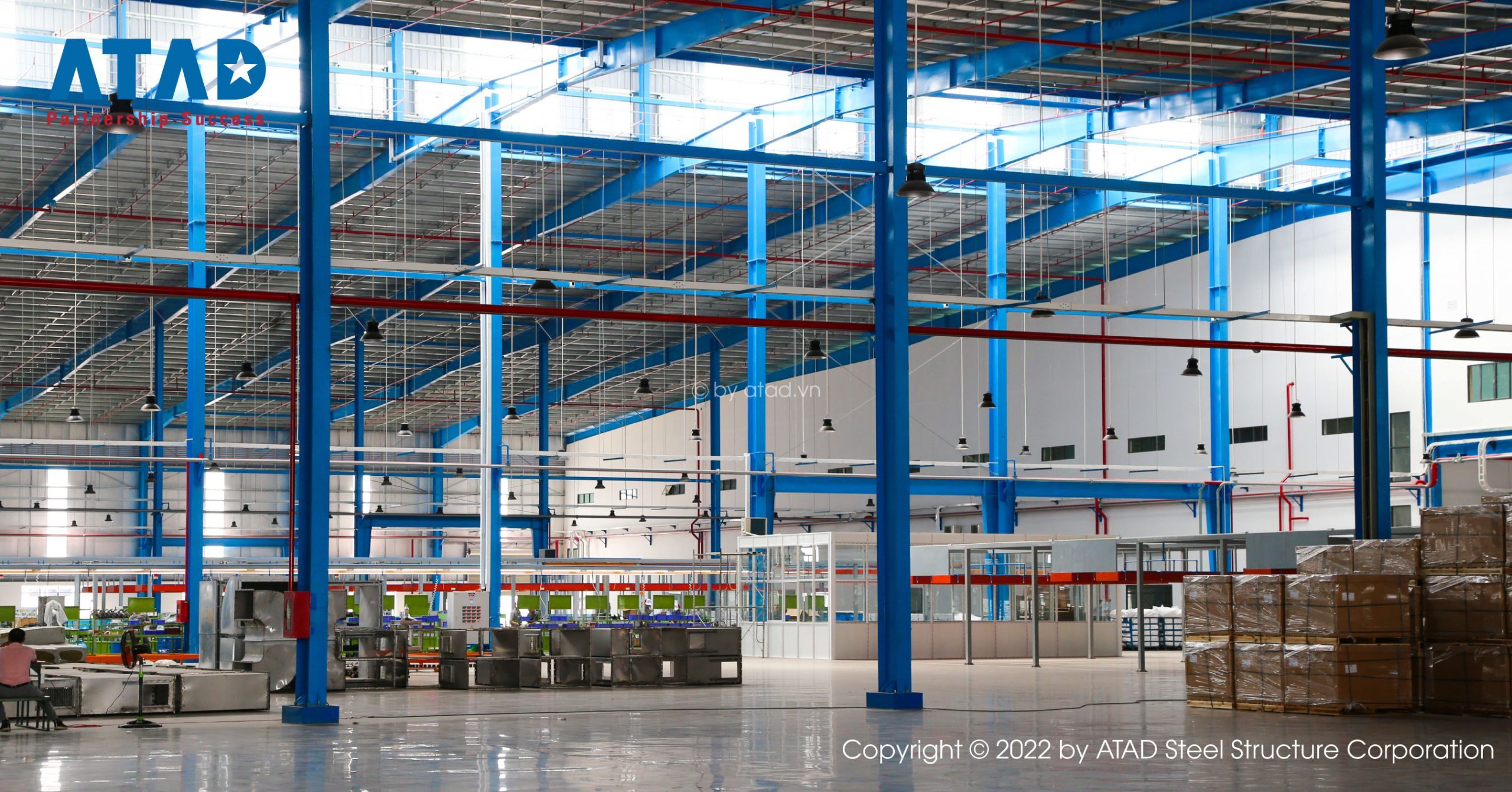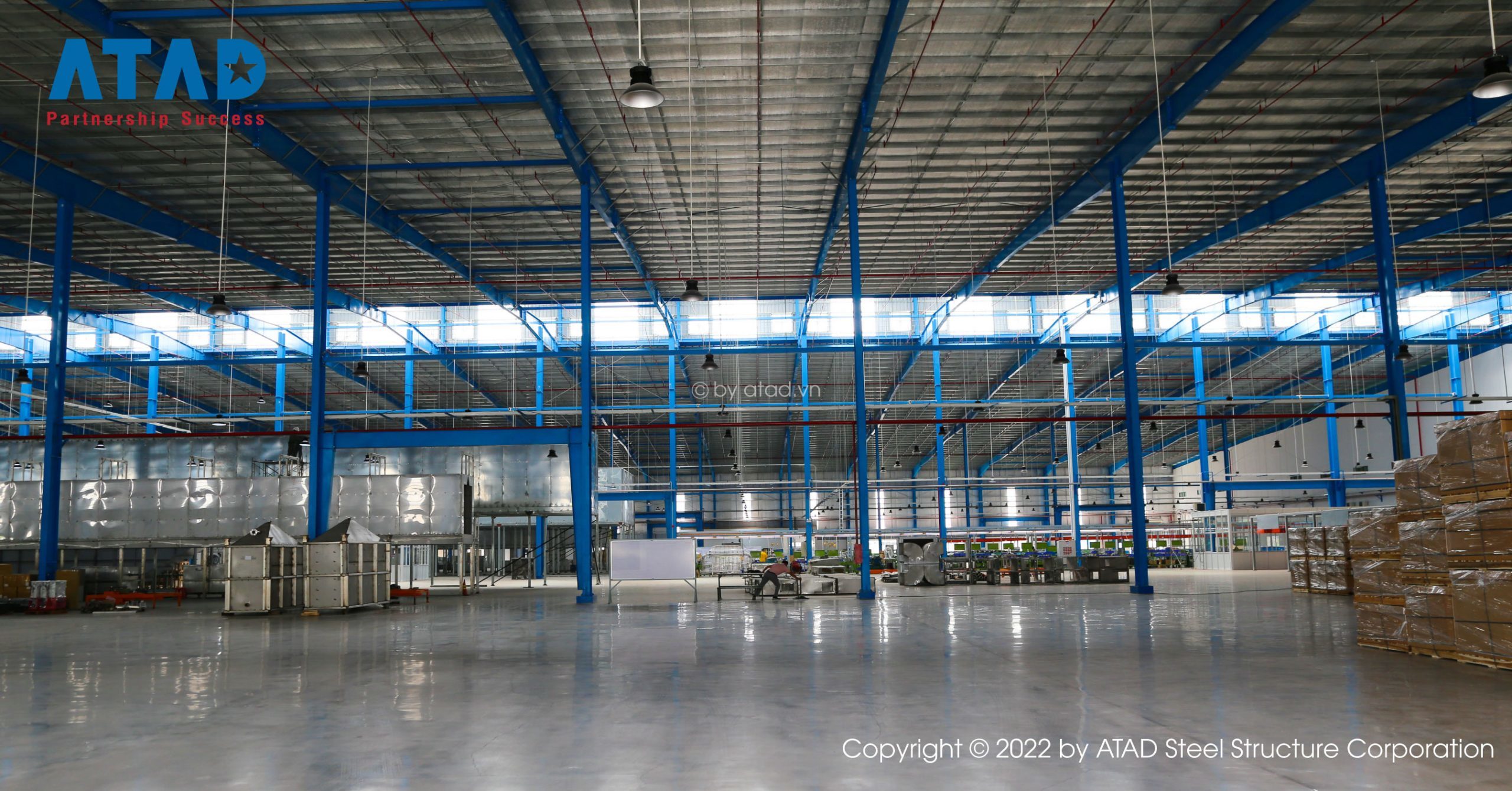 Gudang pengolahan bar baja di proyek ini adalah gudang baja yang dibangun oleh GST.
