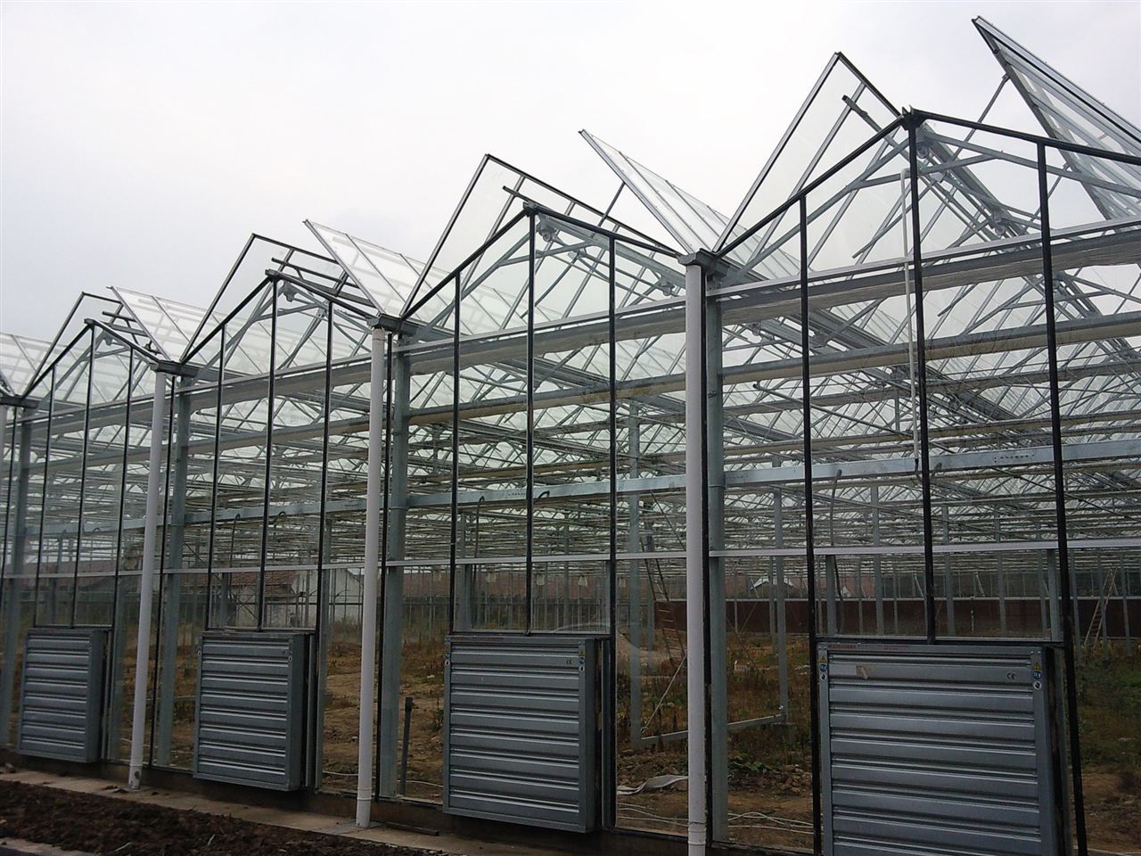 Baja utama rumah kaca mengadopsi balok truss, yang memiliki kapasitas bantalan yang kuat. atap mendistribusikan cahaya secara merata di seluruh ruangan. struktur baja utama mengadopsi pipa galvanis panas,yang nyaman dan cepat dipasangRumah kaca ini dilengkapi dengan sistem sunshade, kipas, tirai basah sistem pendingin yang kuat, sistem anti kondensasi, sistem ventilasi langit-langit, sistem pemanas, sistem kontrol cerdas,sistem tempat tidur bibit bergerak, sistem air dan pupuk, sistem penyemprot otomatis, sistem distribusi listrik, dll.