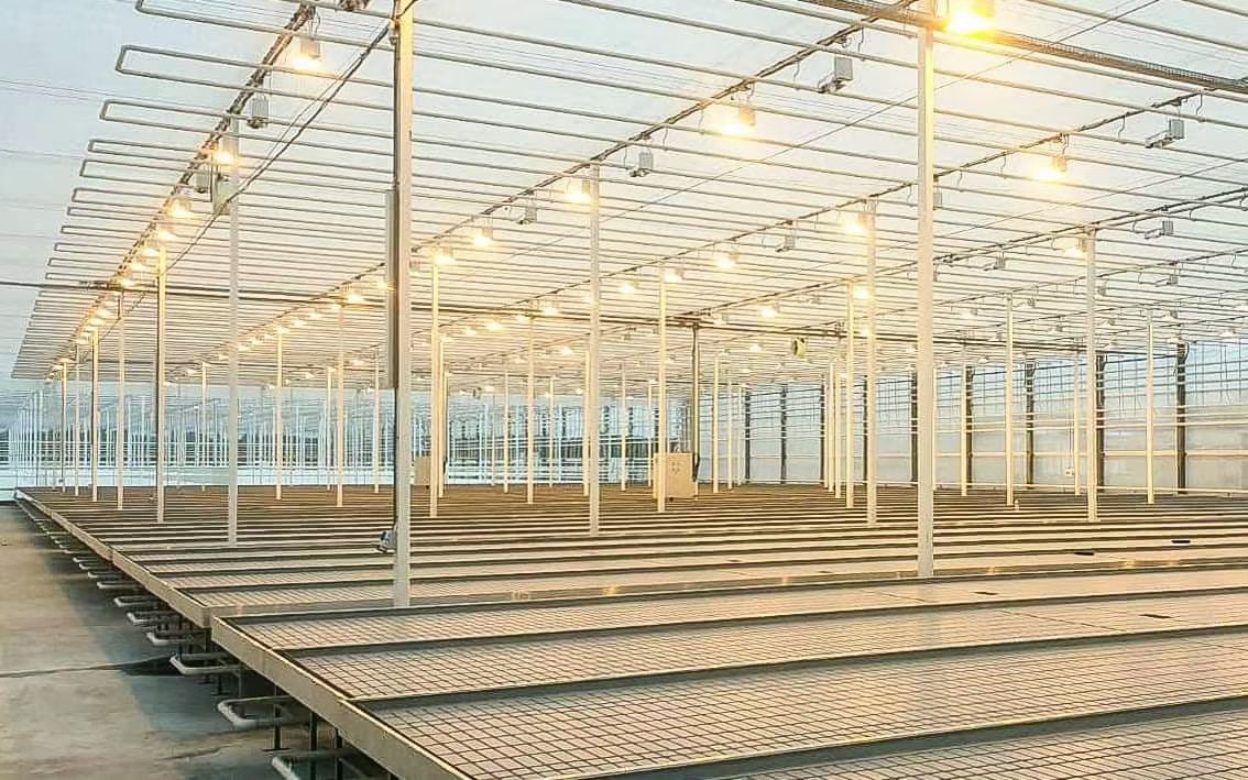 Ruangnya luas:Ruang dalam rumah kaca kaca luas, yang kondusif untuk operasi mekanis dan pemasangan dan tata letak peralatan besar,membuatnya nyaman untuk budidaya tanaman dan manajemen.