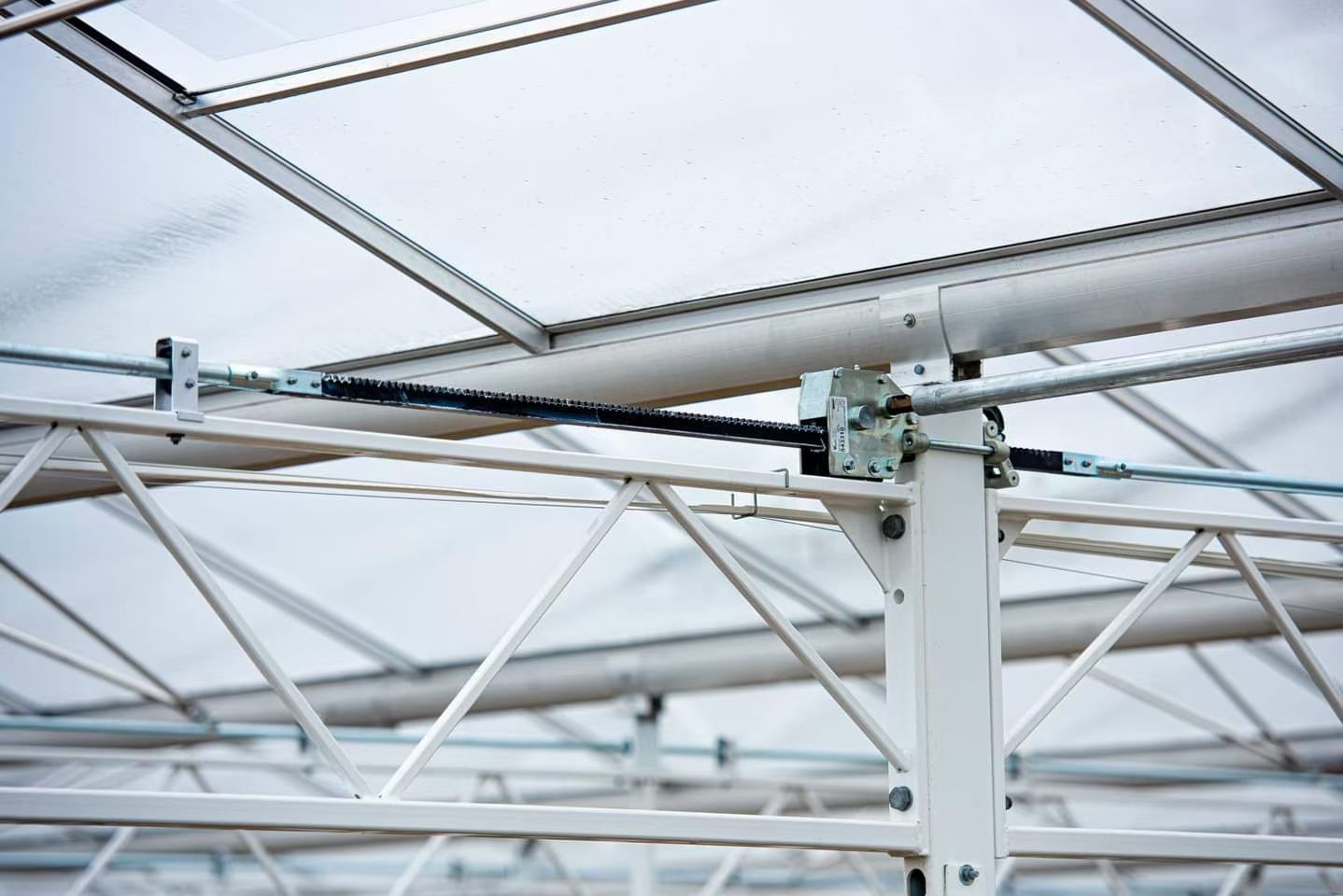 Baja utama rumah kaca mengadopsi balok truss, yang memiliki kapasitas bantalan yang kuat. atap mendistribusikan cahaya secara merata di seluruh ruangan. struktur baja utama mengadopsi pipa galvanis panas,yang nyaman dan cepat dipasangRumah kaca ini dilengkapi dengan sistem sunshade, kipas, tirai basah sistem pendingin yang kuat, sistem anti kondensasi, sistem ventilasi langit-langit, sistem pemanas, sistem kontrol cerdas,sistem tempat tidur bibit bergerak, sistem air dan pupuk, sistem penyemprot otomatis, sistem distribusi listrik, dll.