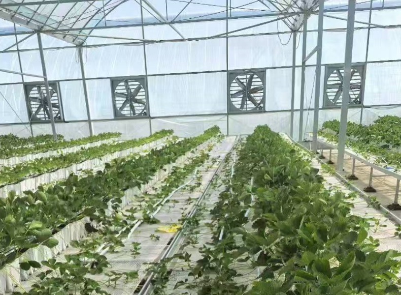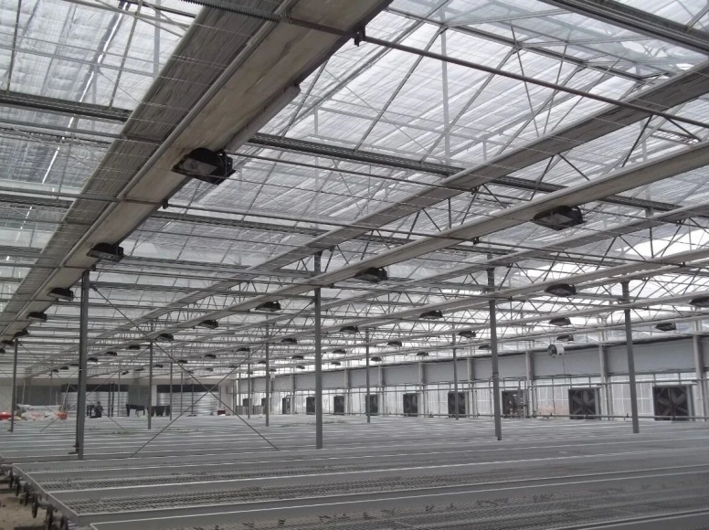 Bangunan rumah kaca menggunakan balok truss, yang memiliki kapasitas bantalan yang kuat. atap mendistribusikan cahaya secara merata di seluruh ruangan. struktur baja utama mengadopsi pipa galvanis panas,yang nyaman dan cepat dipasangRumah kaca ini dilengkapi dengan sistem sunshade, kipas angin, tirai basah sistem pendingin yang kuat, sistem anti kondensasi, sistem ventilasi langit-langit, sistem pemanas, sistem kontrol cerdas,sistem tempat tidur bibit bergerak, sistem air dan pupuk, sistem penyemprot otomatis, sistem distribusi listrik, dll.